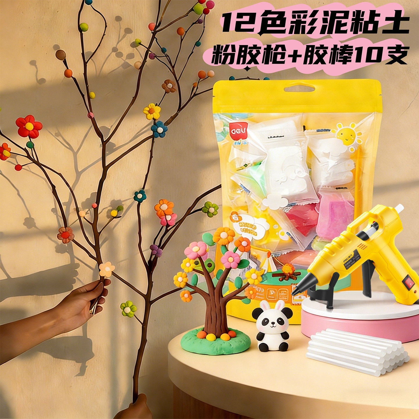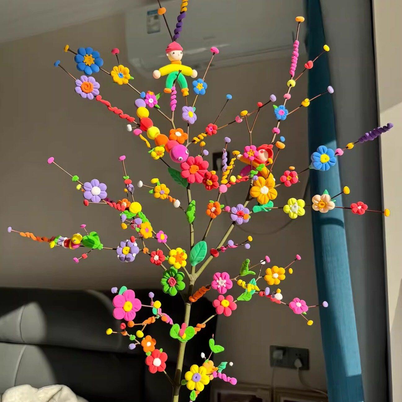 【枯木开花】得力超轻粘土小学生专用diy材料包多巴胺树枝黏土彩泥元旦新年装饰手工橡皮泥美术课粘土