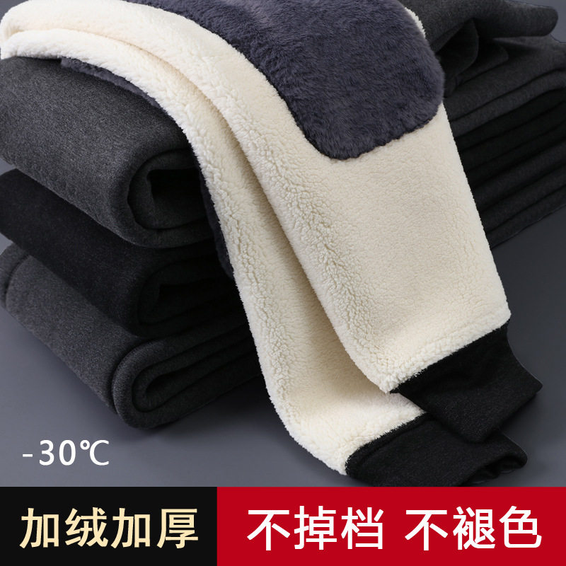 羊羔绒男士保暖裤加厚加绒打底棉毛裤秋裤加肥加大码德绒衬裤冬季