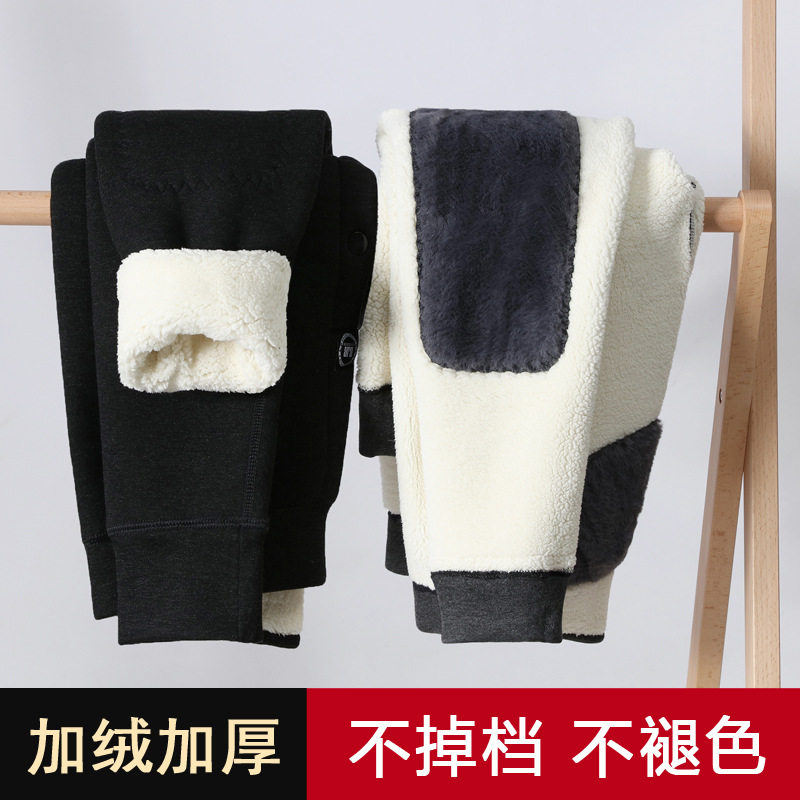 羊绒裤男加绒加厚保暖裤中老年羊毛裤羊羔绒护膝棉裤女冬季打底裤