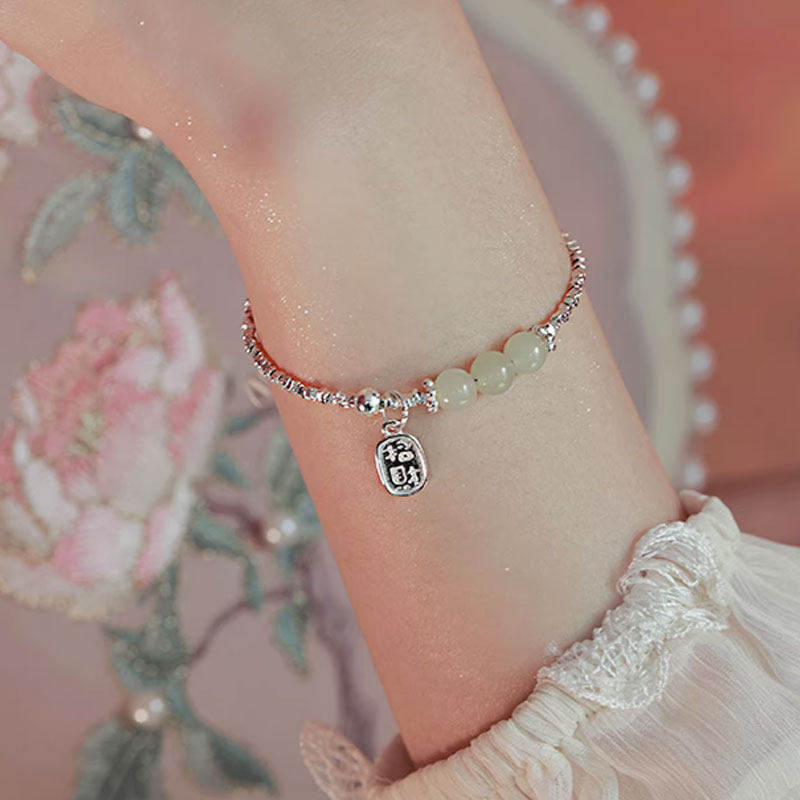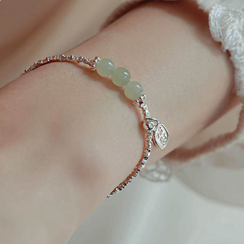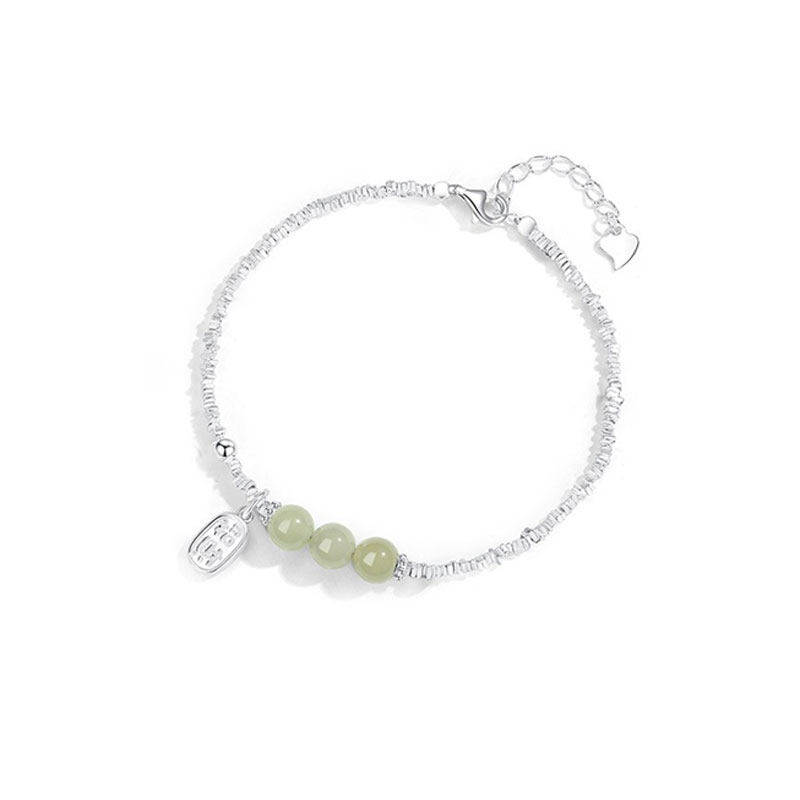 【幂琳】纯银碎银子和田玉手链女2024年新款女生款轻奢小众生日礼