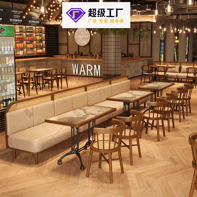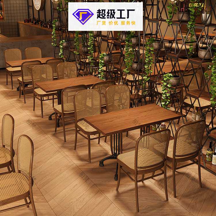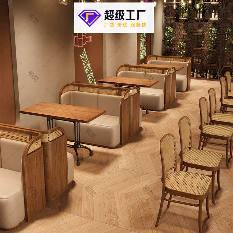 主题餐厅卡座简约日料面馆编藤实木桌椅组合餐厅饭馆商用餐饮家具
