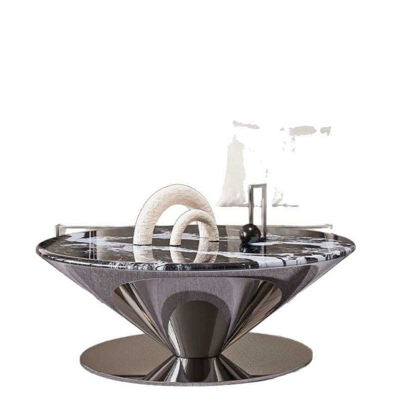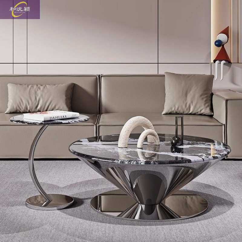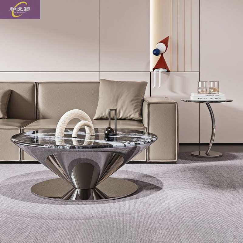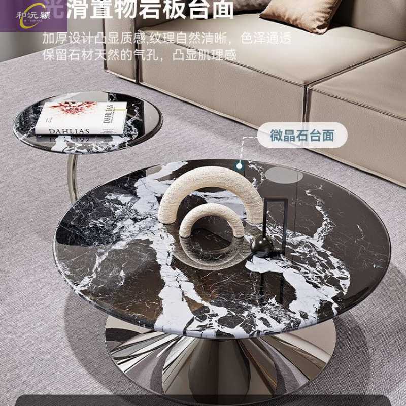 现代意式茶几轻奢不锈钢岩板微晶石飞碟悬浮圆形客厅家用茶几