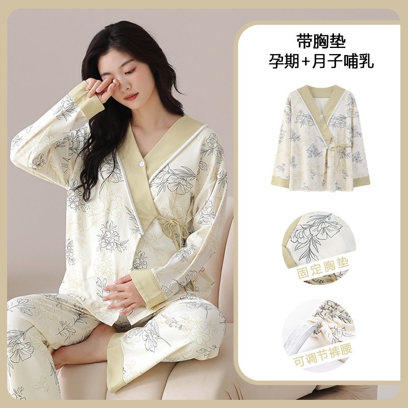 带胸垫月子服秋冬季大码孕妇睡衣产妇哺乳喂奶家居服套装吸汗孕期