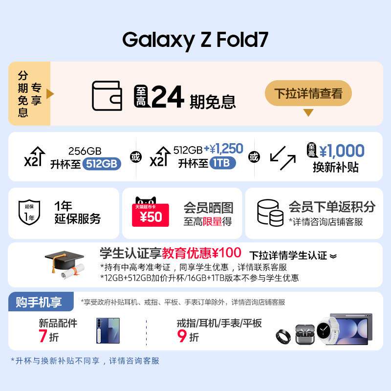 【256GB升杯512GB】Samsung/三星 Galaxy Z Fold7超轻薄折叠屏旗舰AI手机 2亿像素 骁龙8至尊版