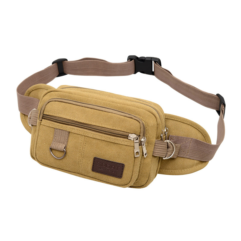 帆布多隔层腰包运动手机包耐磨收钱包男女士胸包挎包大容量工地包