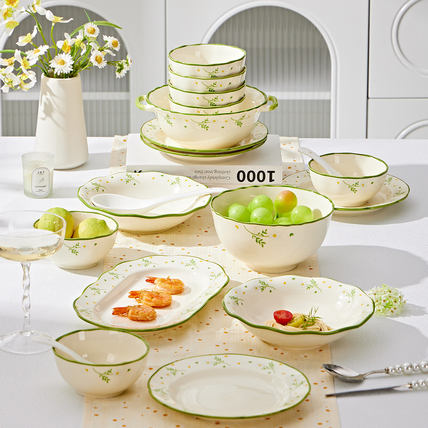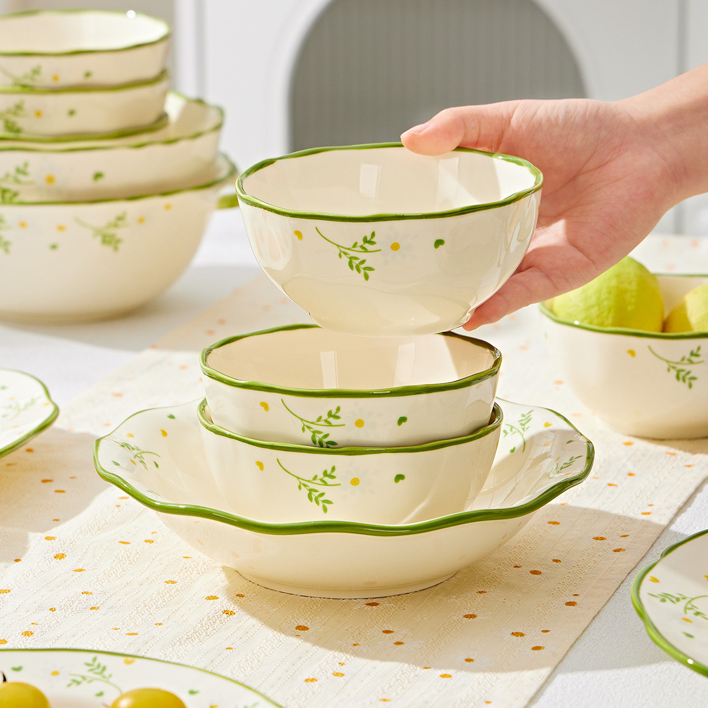 奶油风陶瓷碗家用卡通菜盘子可爱米饭碗汤碗釉下彩儿童餐具耐高温