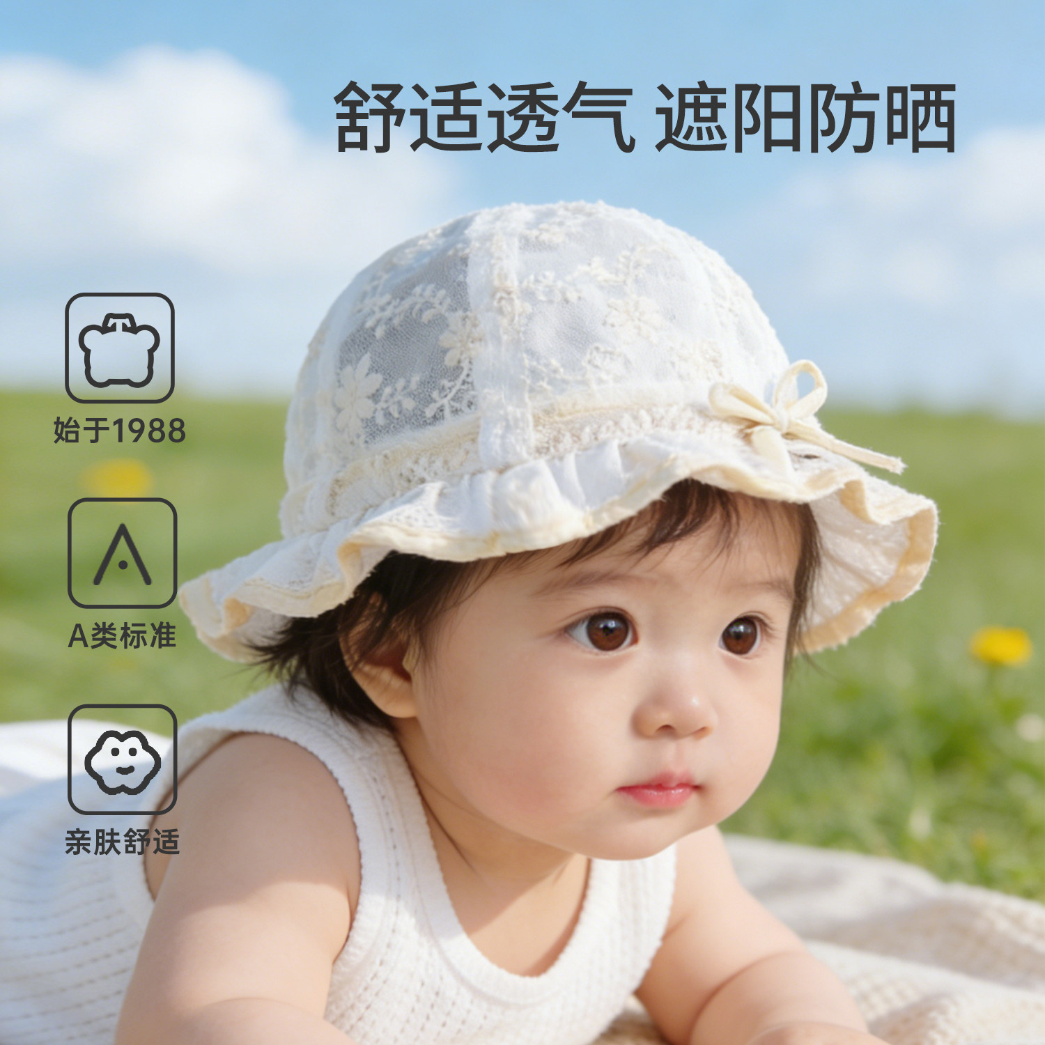 十月结晶粒粒阳光婴儿帽子a类0到3个月新生小月龄宝宝护囟门胎帽