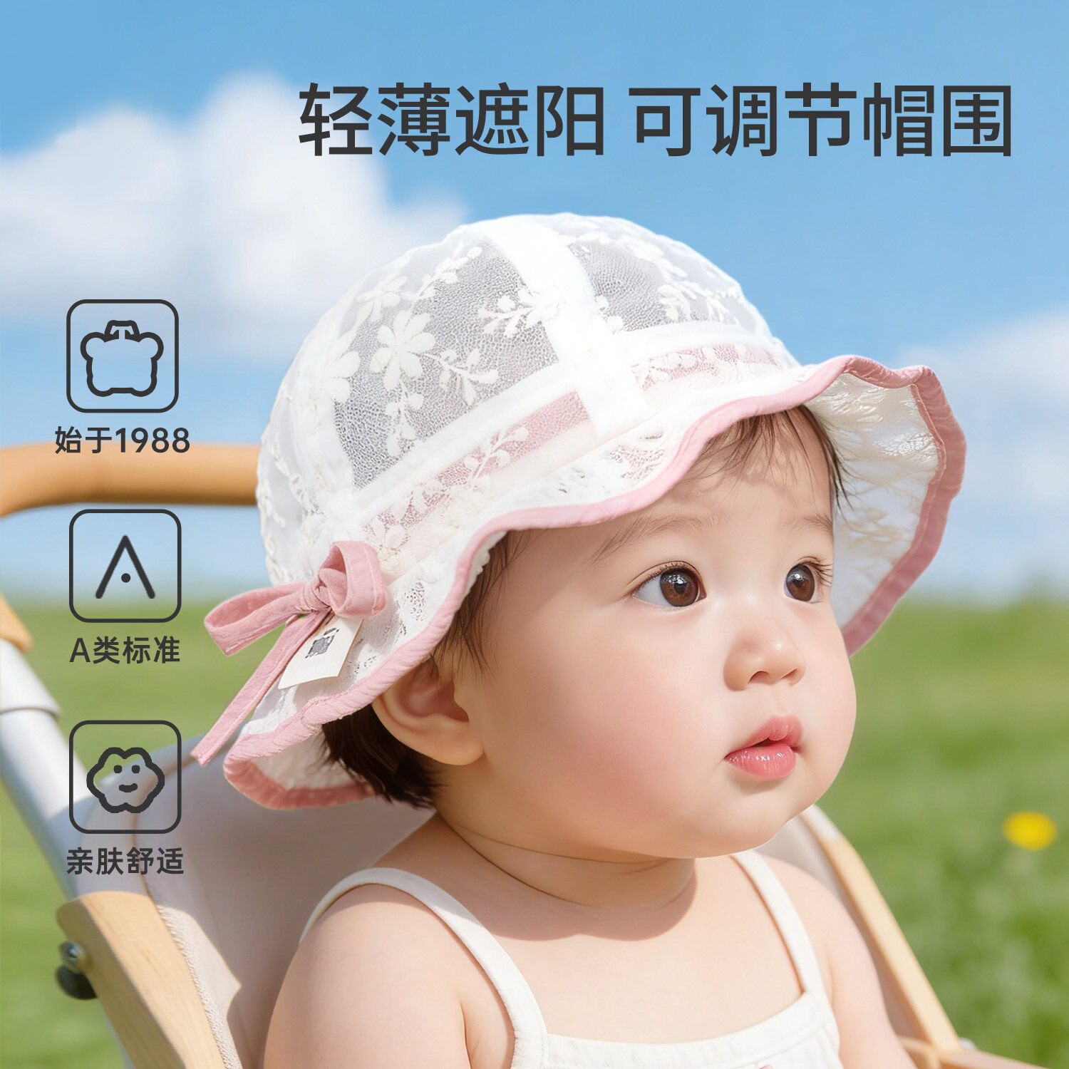 科巢婴儿遮阳帽夏季薄款防晒渔夫可调节宝宝盆帽春秋外出太阳帽子
