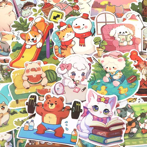 的贴纸张可爱ins贴画儿童装饰笔记本手帐动物64卡通一天日常创意