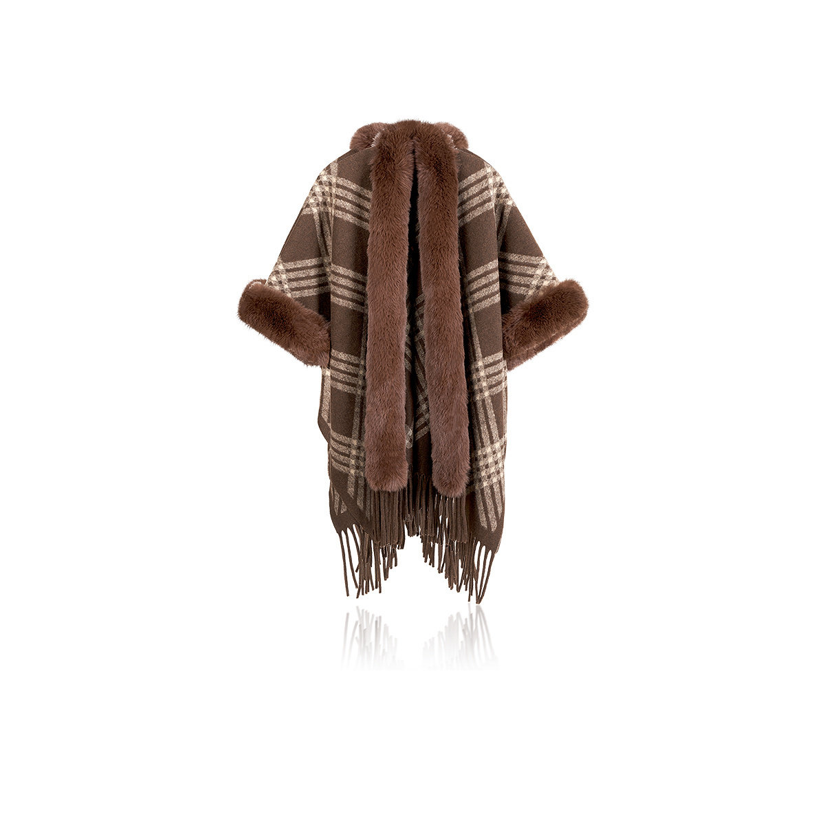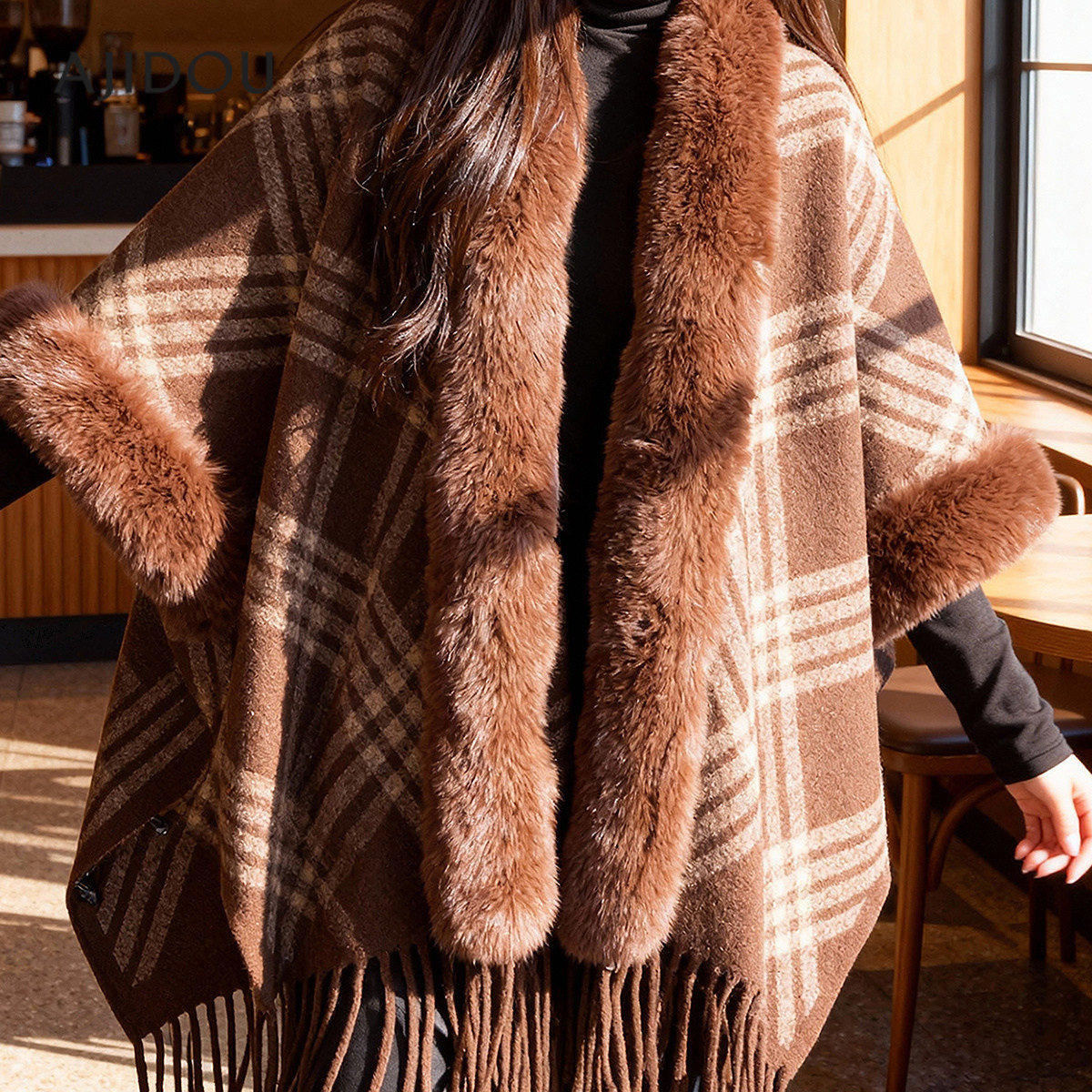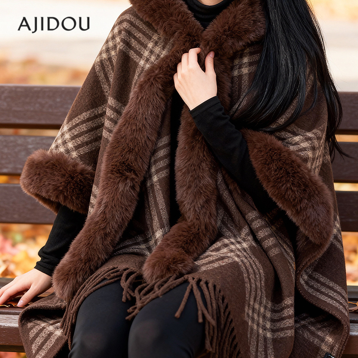 AJIDOU阿吉豆英伦风格纹大披肩冬季围巾保暖咖色斗篷披风居家办公