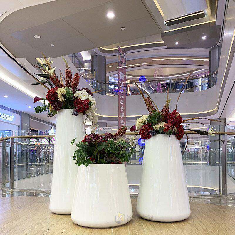玻璃钢花盆商场楼盘美陈花箱酒店花器商业街花钵户外大号花瓶厂家