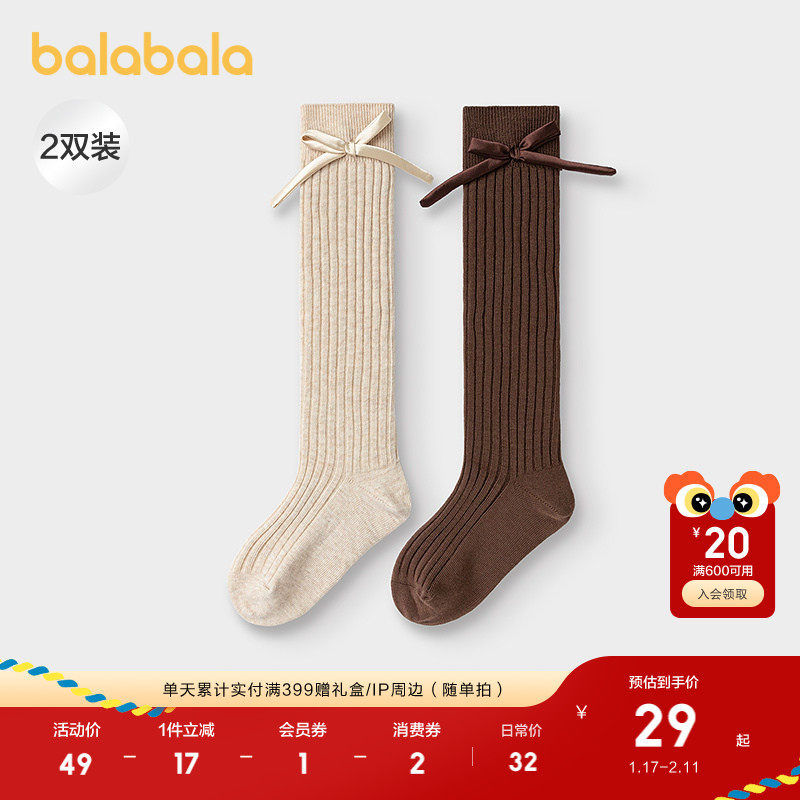 巴拉巴拉女童袜子秋新品儿童中筒袜不勒脚甜美两双装