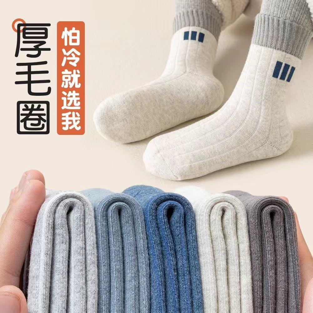 男童袜子秋冬季儿童加厚中筒袜中大童学生青少年保暖毛圈冬天男孩