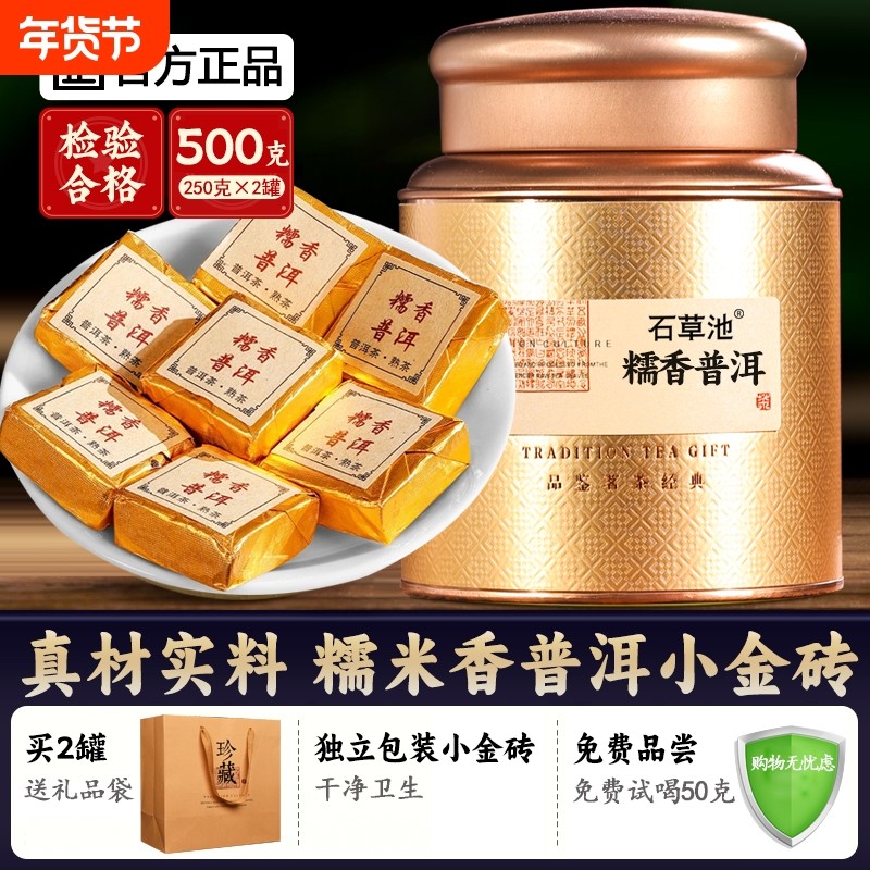 石草池 云南勐海糯米香普洱茶熟茶小金砖茶饼小沱茶礼盒装500克