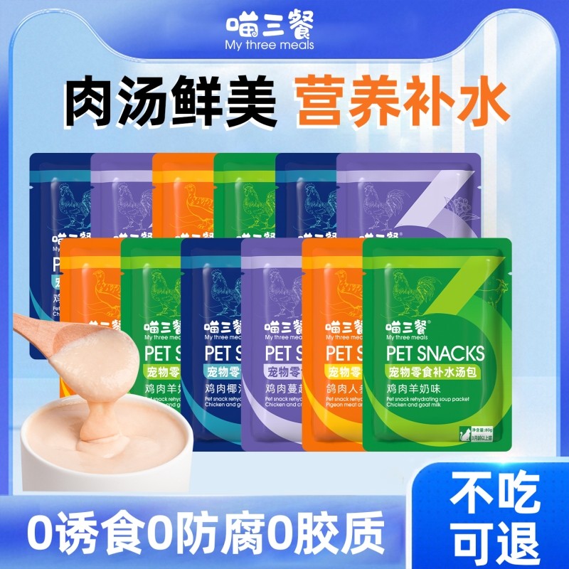 喵三餐猫咪补水汤包成幼猫宠物零食羊奶补充水分营养湿粮猫粮泌尿