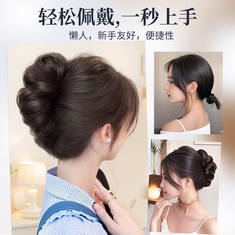 低扎丸子头假发鸡毛头抓夹盘发发包慵懒感造型头饰自然蓬松后脑勺