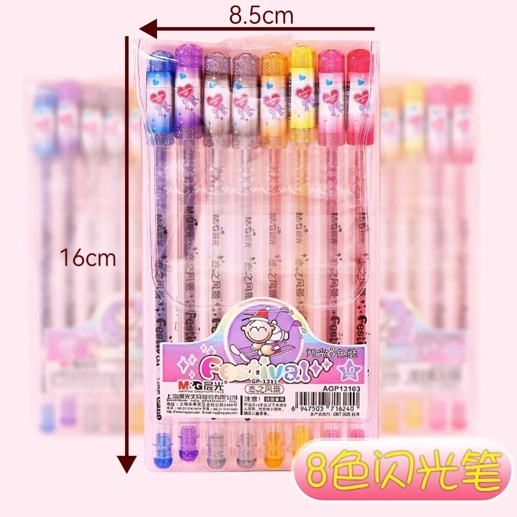 8色1.0mm闪光彩色中性笔