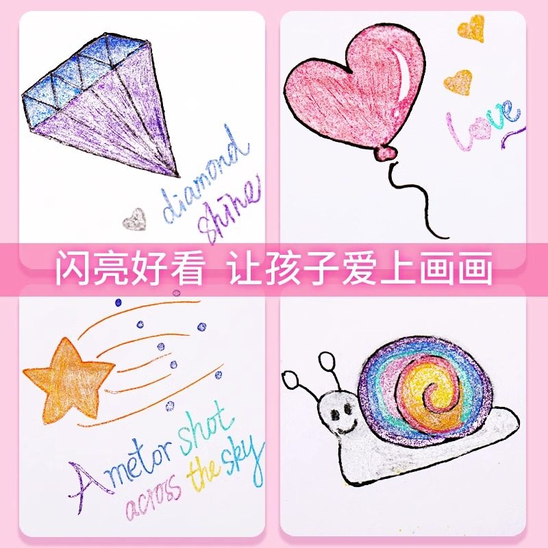 彩色闪光笔学生用儿童闪亮轮廓闪粉高光水彩笔啫喱发光流沙银光