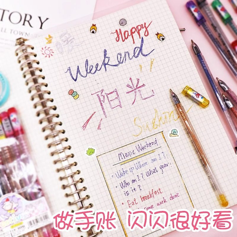 新款闪光啫喱笔高光绘画笔学生手账diy荧光笔套装彩色闪光记号笔