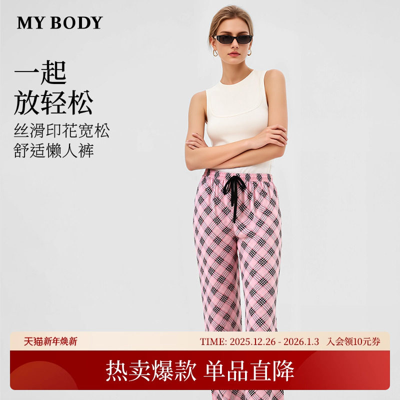 商场同款MYBODY睡裤女款可外穿时尚格子印花宽松舒适慵懒家居长裤