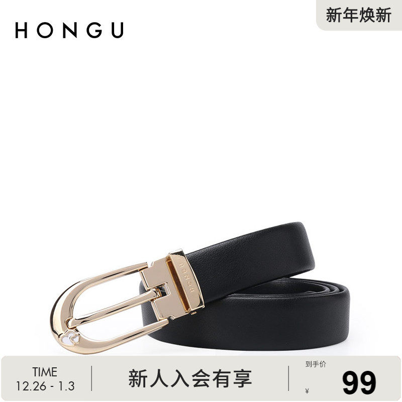 红谷女士皮带女牛皮针扣细腰带女休闲时尚简约百搭装饰牛仔裤带女