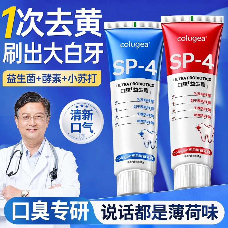 美白牙膏去黄去口臭益生菌成人速效洗白专用正品官方旗舰店亮白