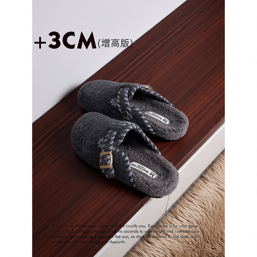 加绒勃肯鞋女2025新款秋冬厚底复古保暖皮带扣毛毛鞋外穿包头拖鞋