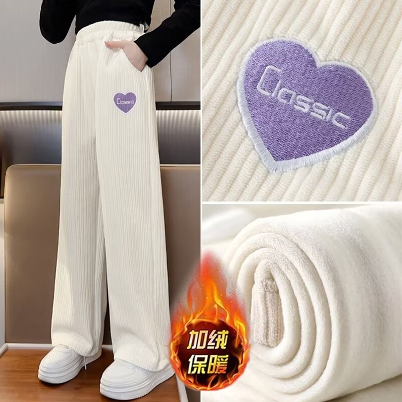 女童裤子加绒秋冬2026新款儿童女孩大童冬季加厚一体绒直筒阔腿裤