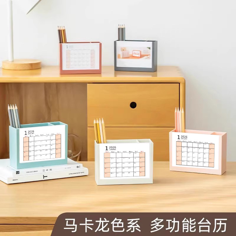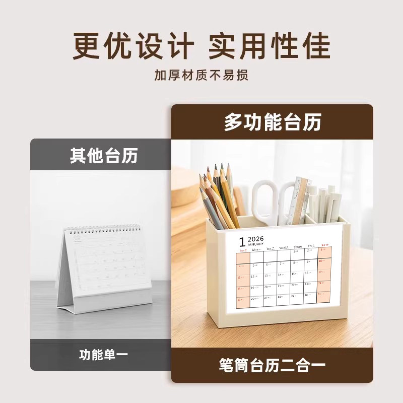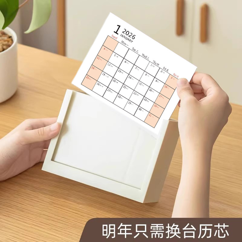 2026年台历架企业定制网红ins无印风笔筒收纳盒创意简约良品工作月计划记事日历办公桌面摆件月历年历