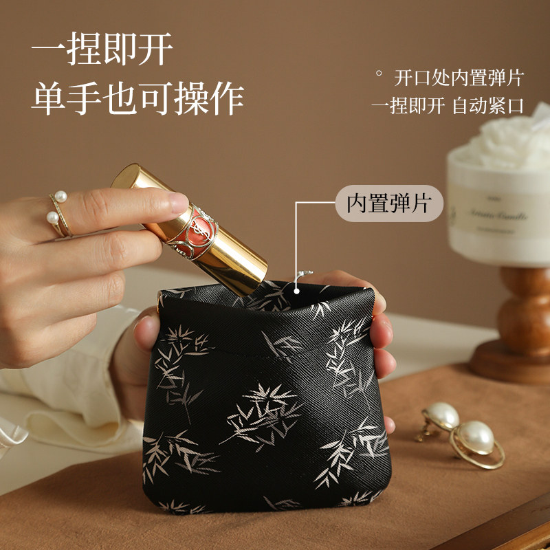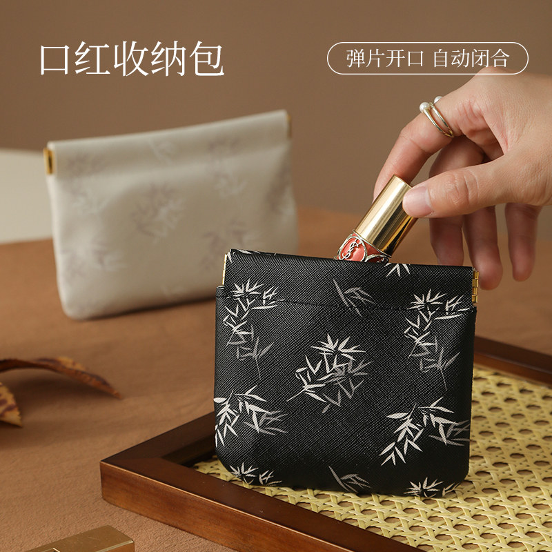 新中式弹片印花收纳包自动闭合口红包化妆袋包零钱里面小包便携品
