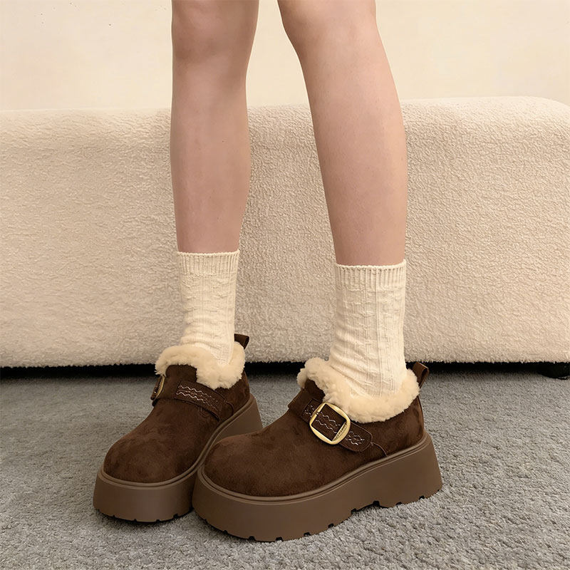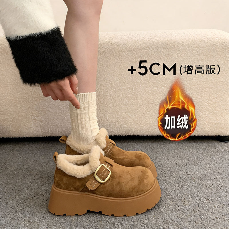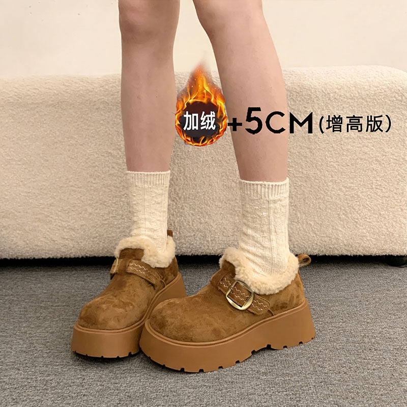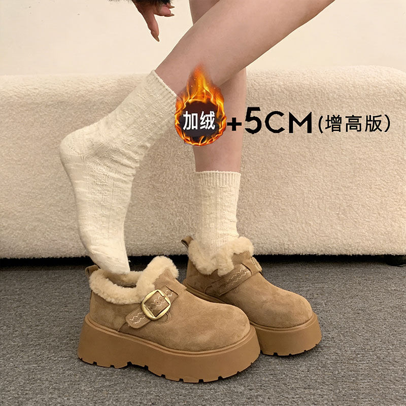 厚底增高加绒保暖勃肯鞋女鞋2025新款冬季雪地靴乐福鞋毛毛棉鞋