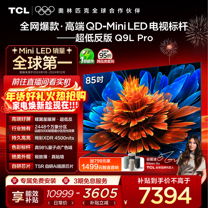 TCL电视 85Q9L Pro 85英寸 QD-Mini LED 蝶翼星曜屏 电视机官方店