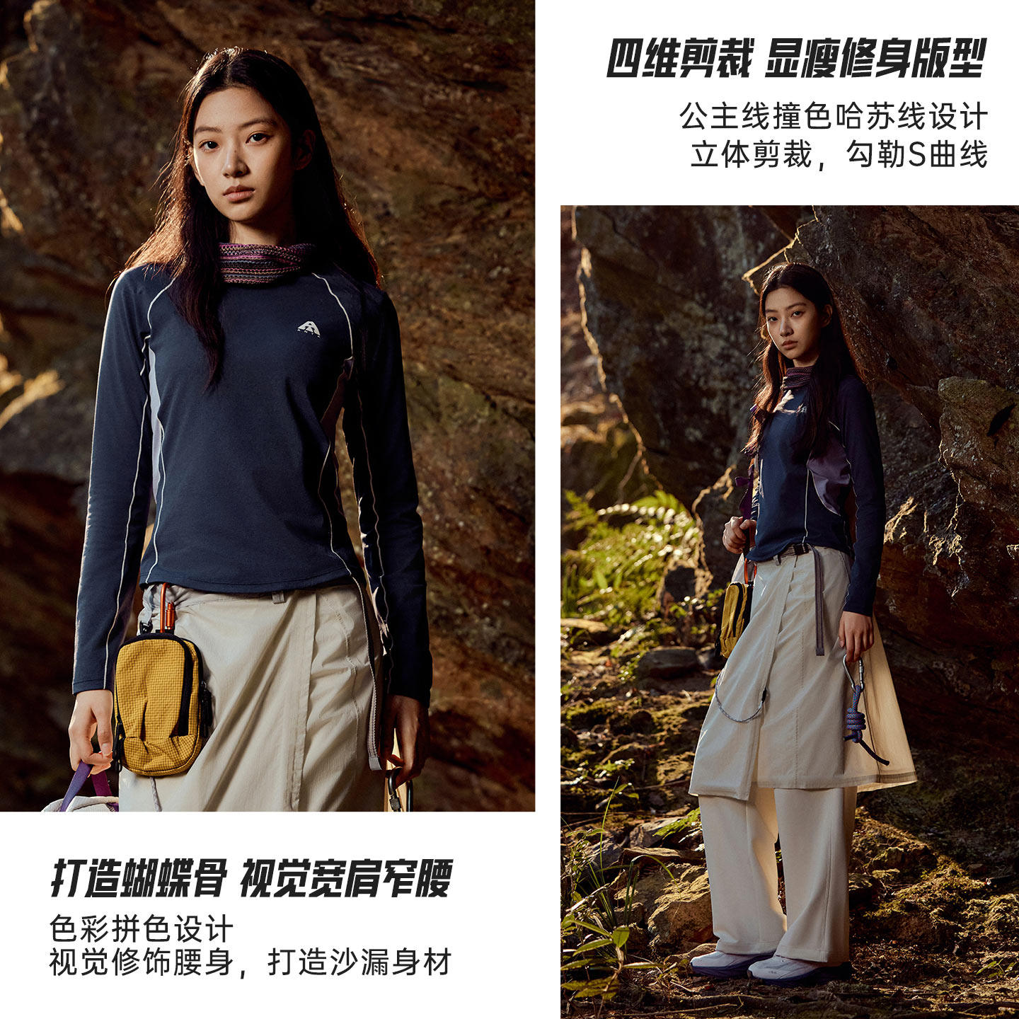 安踏速干T丨户外吸汗透气t恤女新款长袖撞色拼接休闲长袖运动上衣