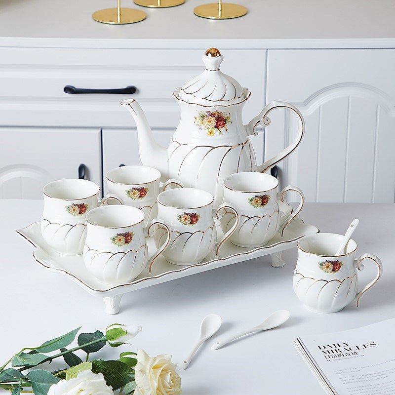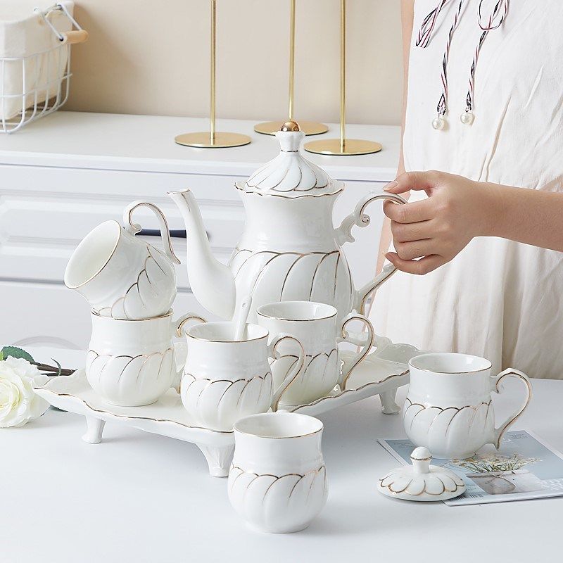 北欧水具套装陶瓷茶杯家用客厅古茶道简约欧式耐热茶具杯子冷水壶
