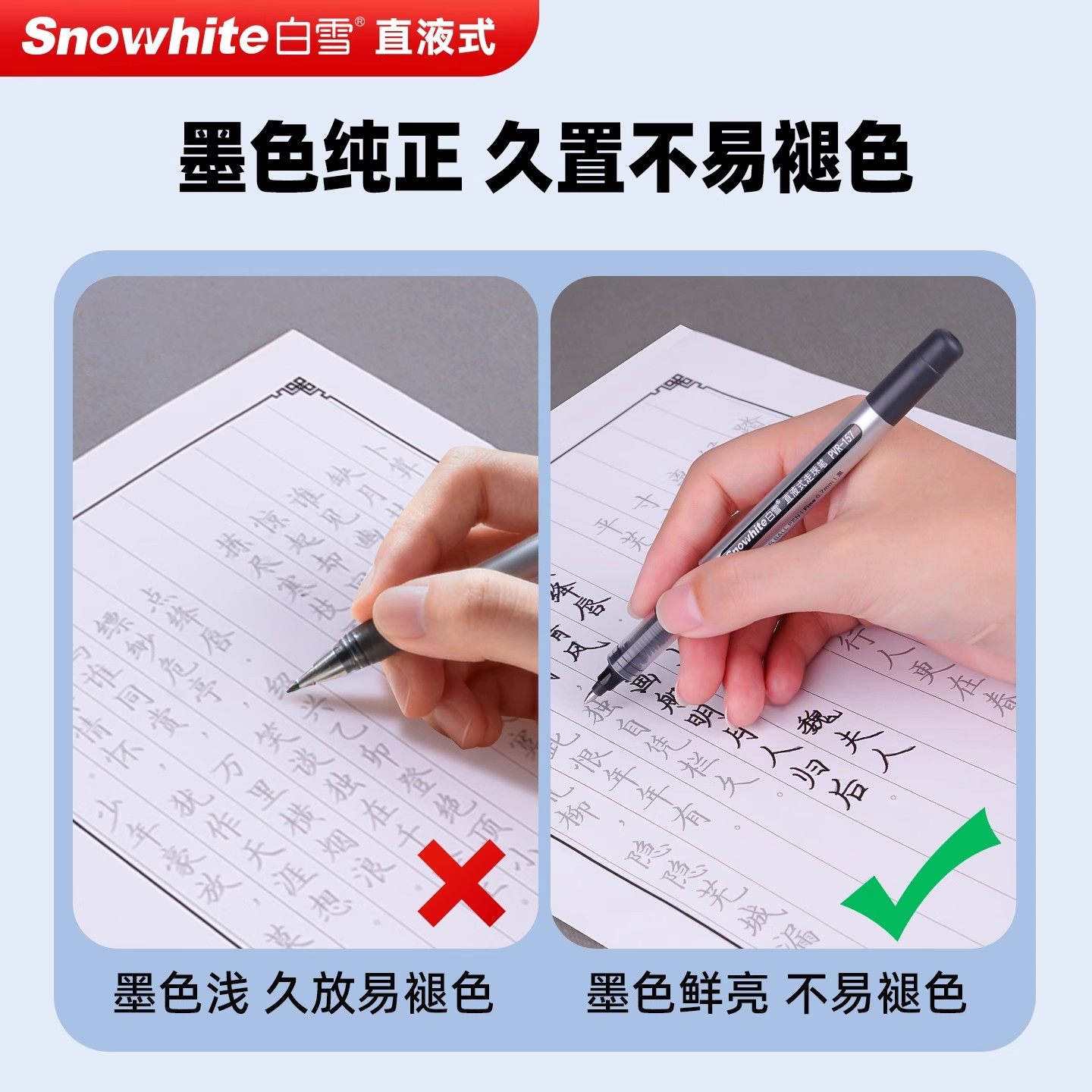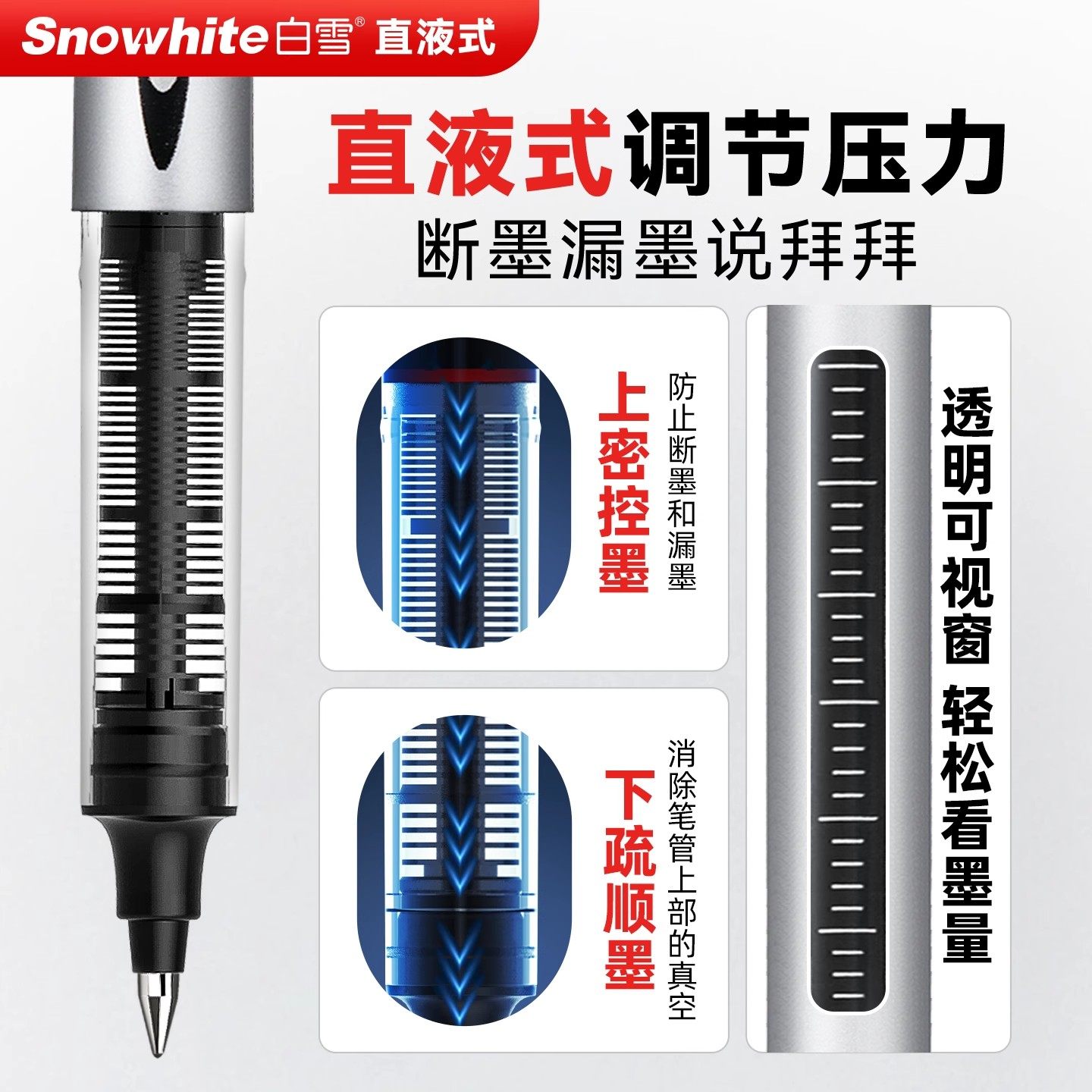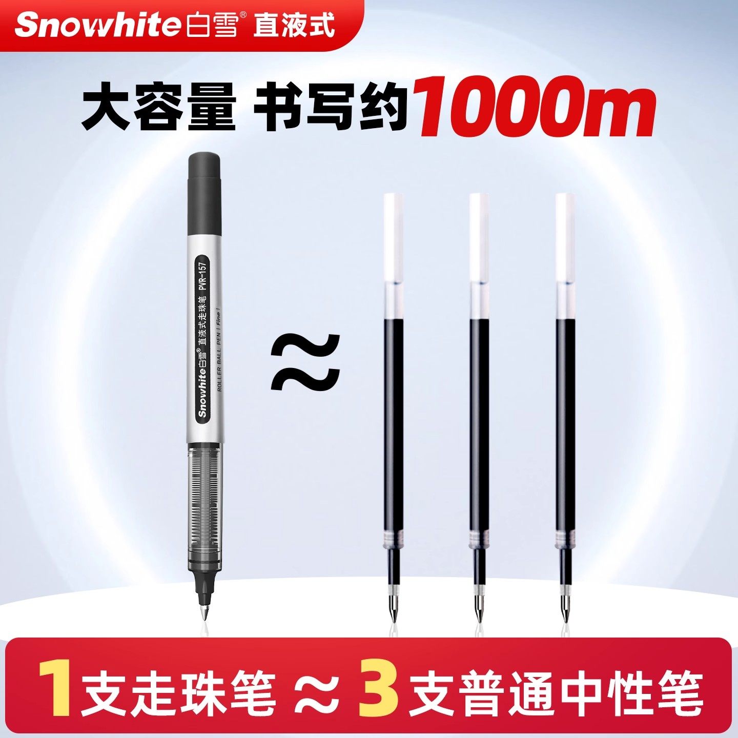 白雪直液式走珠笔0.5mm黑色学生用商务办公中性笔速干碳素直液笔