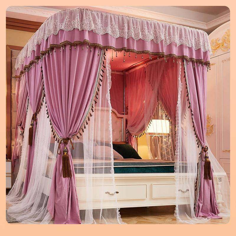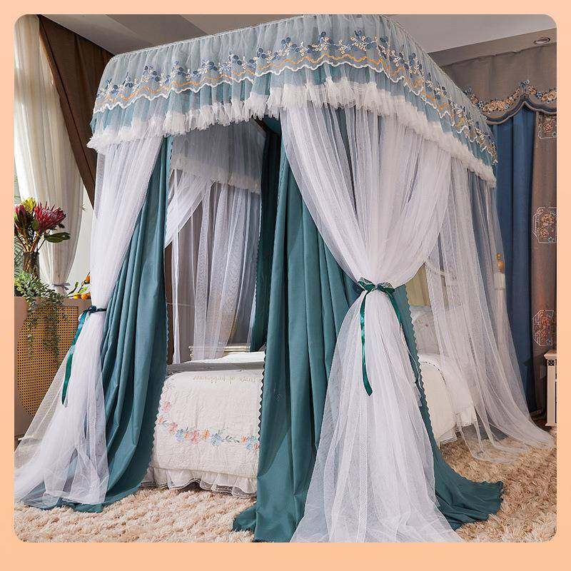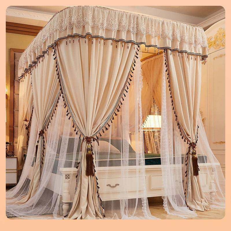 ⇗床幔U型支架遮光防尘布幔1.8米床双人家用三开门落地蚊帐双层
