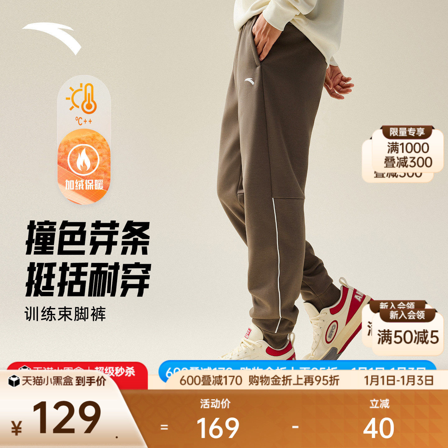 安踏针织运动长裤男士2025冬季新款加绒保暖束脚卫裤子训练跑步裤