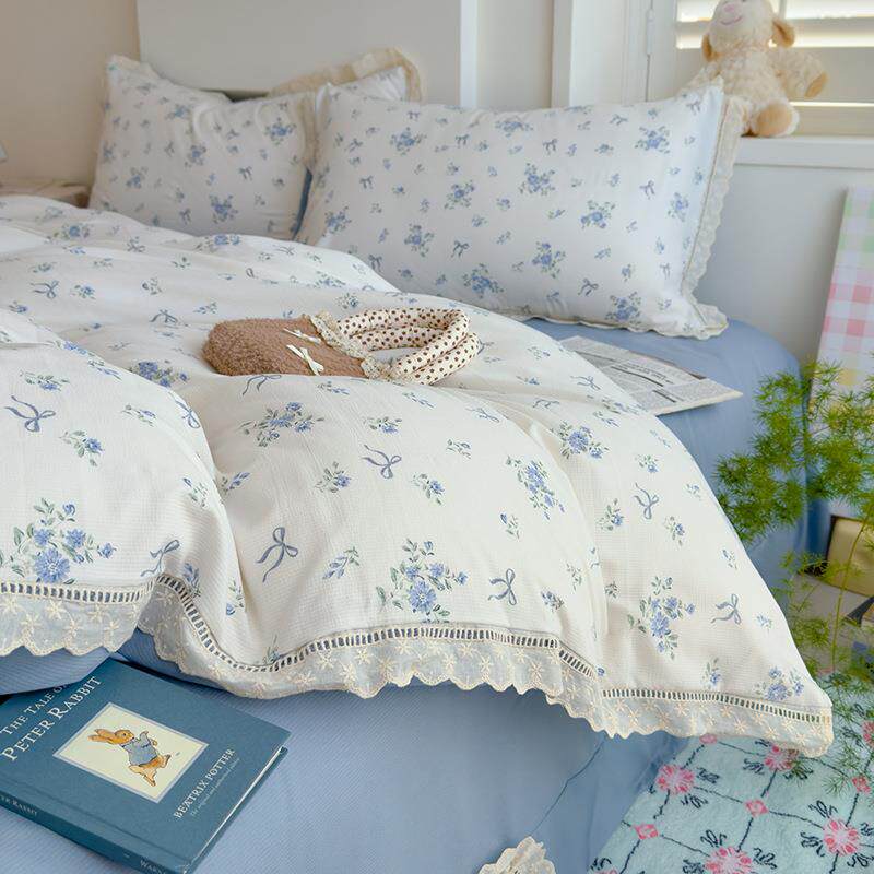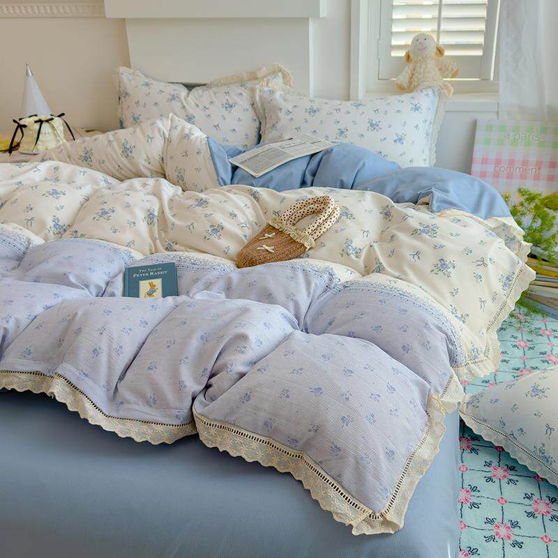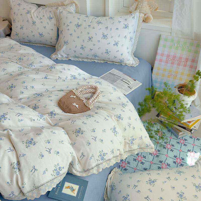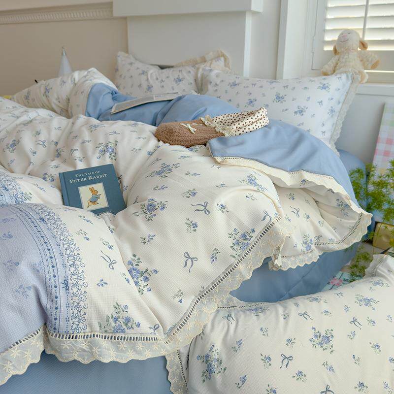 全棉镂空花边款式提花皱皱纱四件套家用碎花法式学生宿舍床上套件