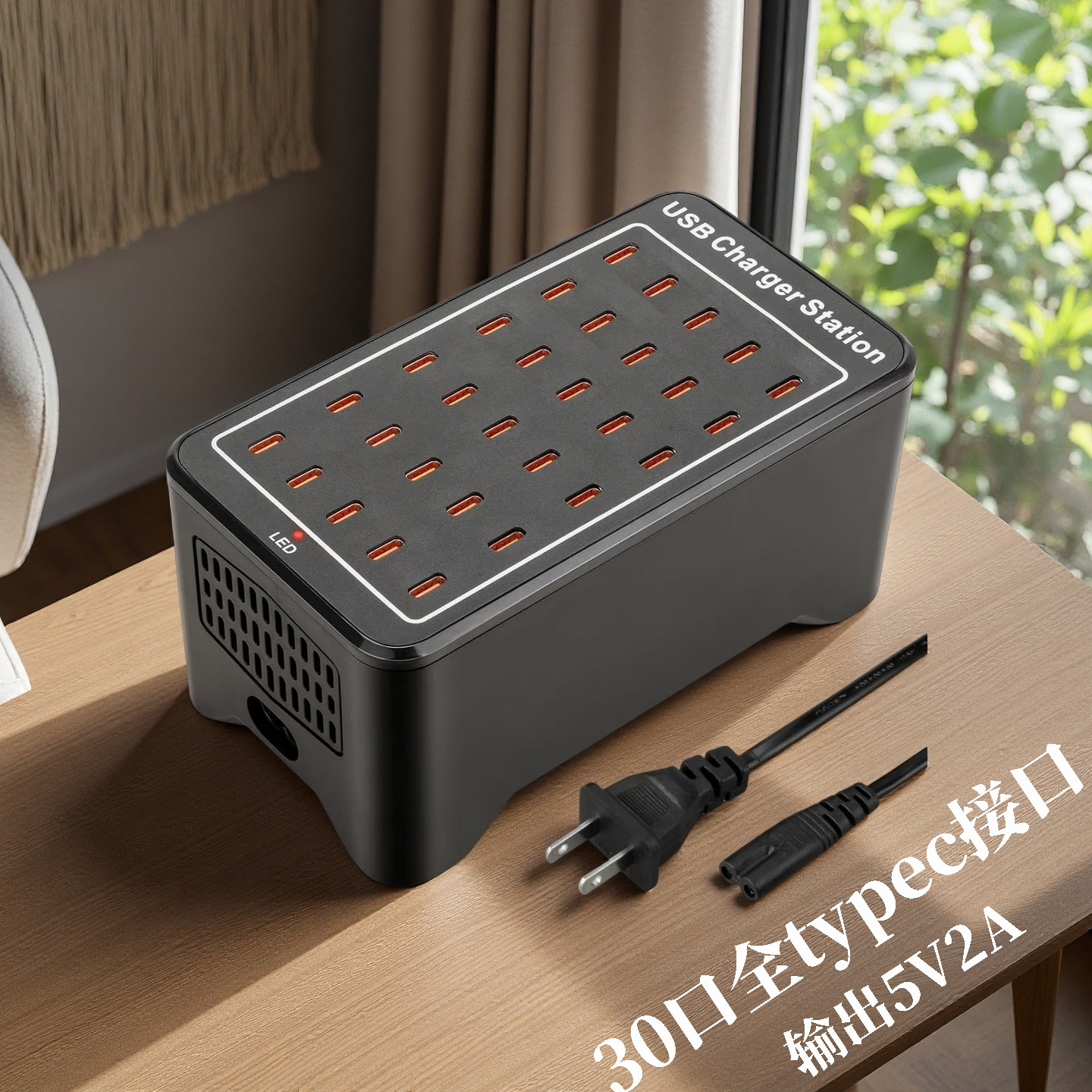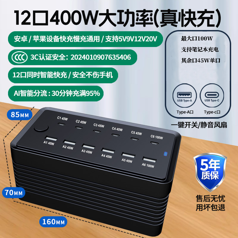 400W多口usb快速充电器手机typec口5V3A闪充插排座pd超级快充大功率多孔智能桌面充电站适用苹果华为三星小米