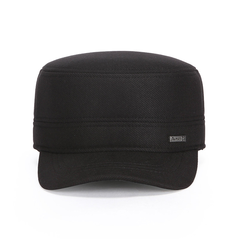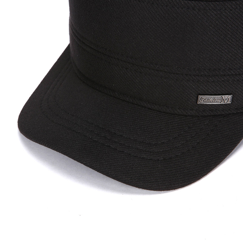 中老年帽子男士冬天爸爸父亲保暖老人秋护耳平顶老头棉鸭舌帽黑色