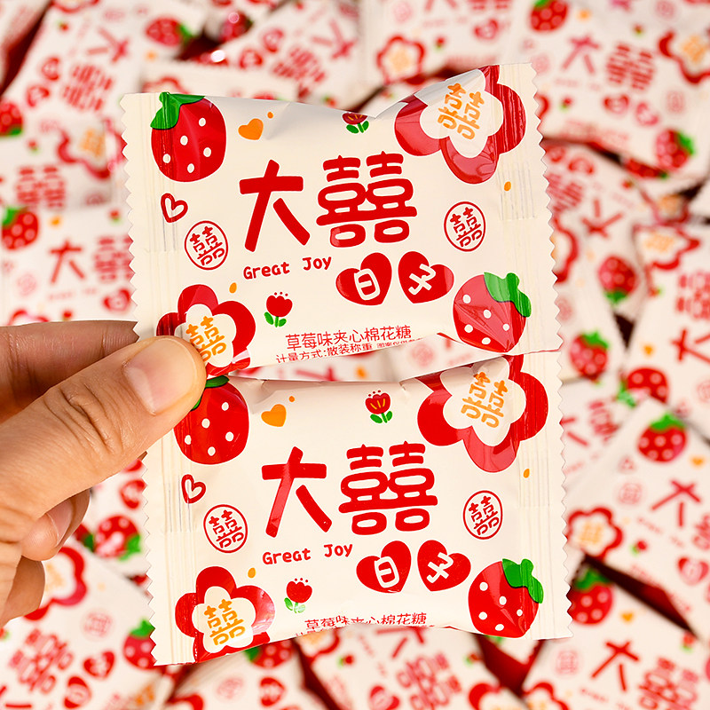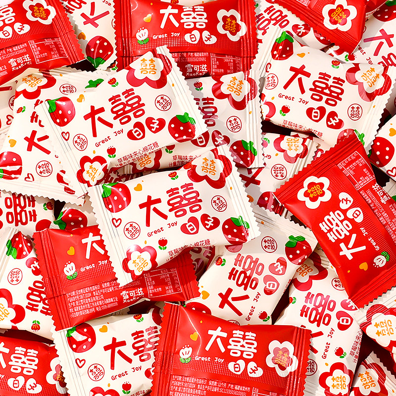 大喜的日子棉花糖水果味夹心结婚喜糖订婚糖果混散装批发满月乔迁