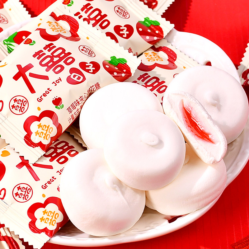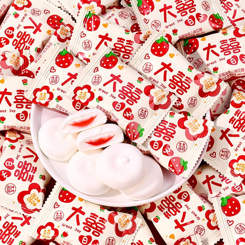 大喜日子夹心棉花糖喜庆结婚订婚喜糖水果味夹心糖果散装年货批发
