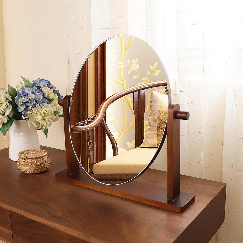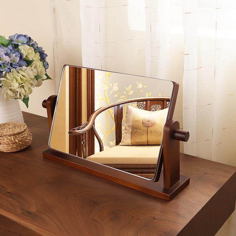 台式化妆镜可翻转桌面梳妆镜简约家用木质镜现代中式复古风镜子