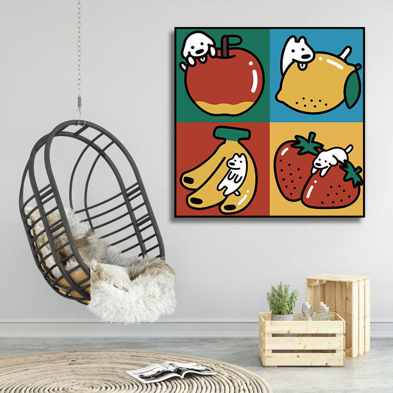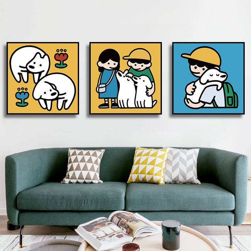 墙面趣味挂画背景墙床头卡通ins狗狗猫咪动漫插画油画无框装饰画