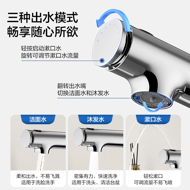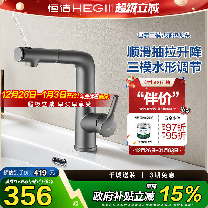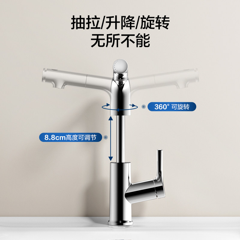 恒洁抽拉式面盆水龙头冷热卫生间防溅洗脸旋转按键漱口水龙头929