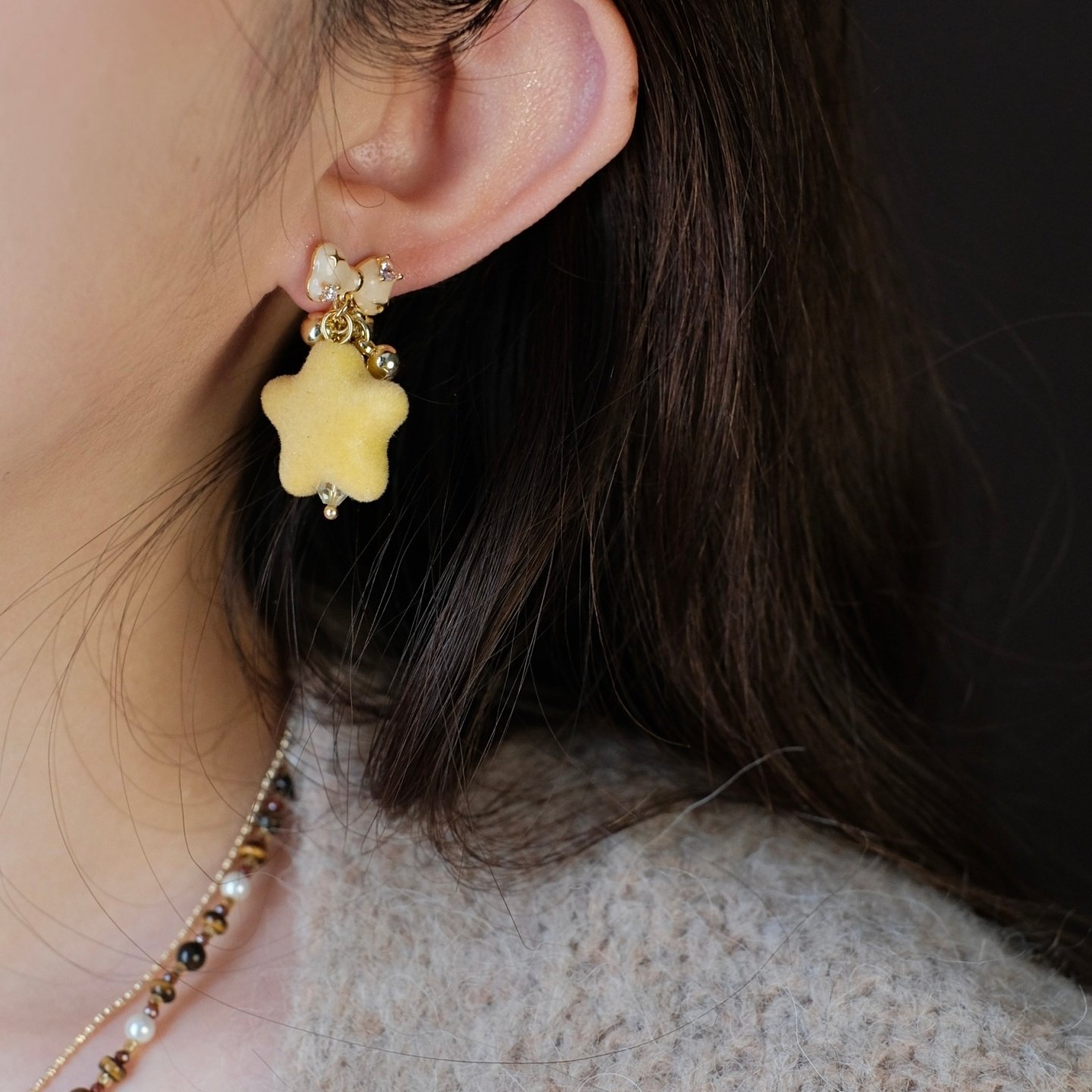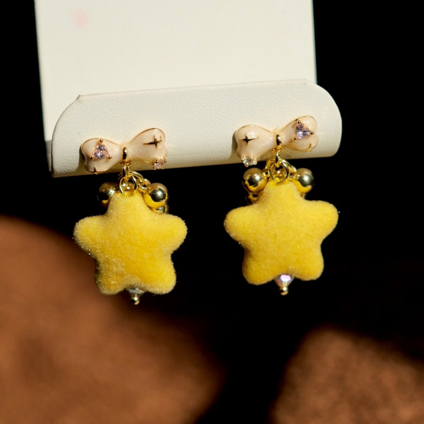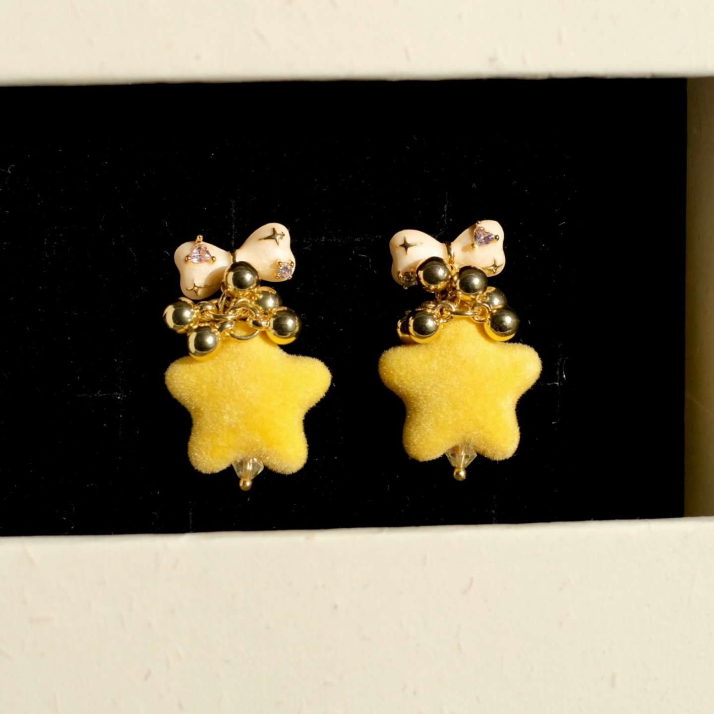 《奶黄星星》原创多巴胺少女甜美精致蝴蝶结泡泡耳钉耳夹耳环耳饰