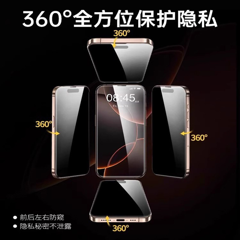 [新360度防窥]ZPV适用苹果17防窥钢化膜iPhone16promax手机膜15pro/13防偷窥屏14plus新款12贴膜11全屏i保护