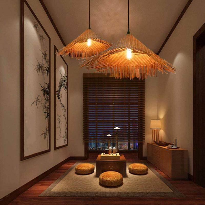 中式田园餐厅草帽编制灯罩农家乐民宿个性创意日式竹编织斗笠吊灯