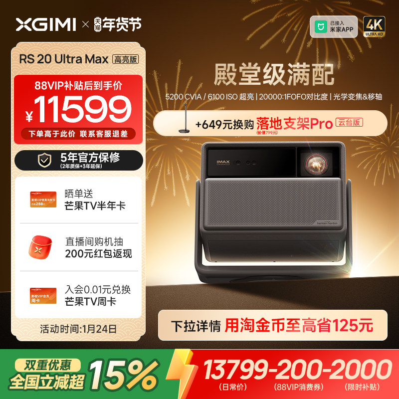 【全国补贴 立减15%】极米RS 20 Ultra Max高亮版三色激光变焦移轴4K家用投影仪超高清高亮投影机