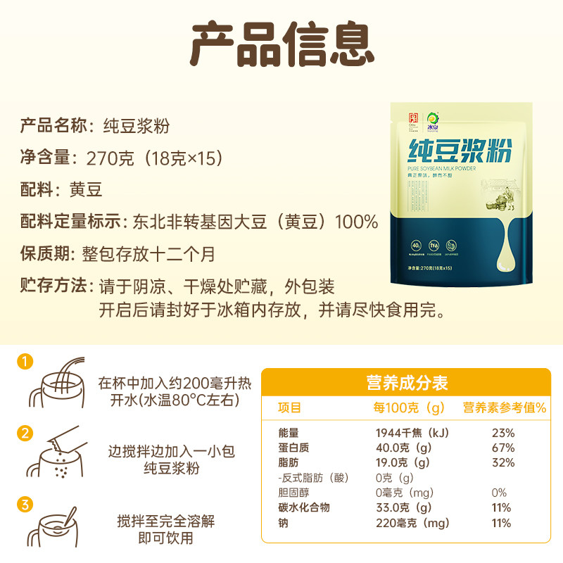 冰泉豆浆纯豆浆270g原味豆浆粉早餐代餐营养速溶冲饮速食冲泡黄豆